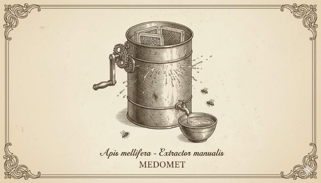 Přístroj na vytáčení medu z plástů pomocí odstředivé síly. Plásty se vkládají do bubnu a med se vytáčí bez poškození díla.